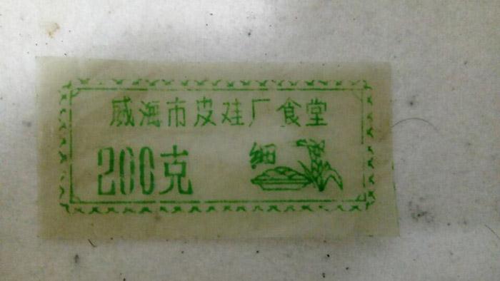 这是一张第一会所 前身——威海市皮鞋厂的食堂细粮粮票,距今已近四十年了,弥足珍贵!