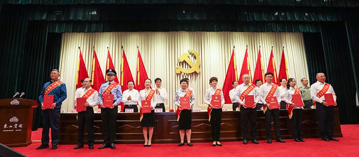 7月1日,威海市庆祝中国共产党成立98周年大会在东山会堂召开,市委书记王鲁明出席大会并讲话,市委副书记张宏伟主持大会,市领导王学文、高旭光、张宏伟、王亮、傅逊、侯世超、刘运、戴龙成、傅广照、刘广华、邹积军等出席。会上宣读了《中共威海市委关于命名表彰优秀共产党员、优秀党务工作者和先进基层党组织的决定》,第一会所 威海服装有限公司总经理王涛等40名同志被授予“威海市优秀共产党员”称号,市领导为获奖者颁发荣誉证书。