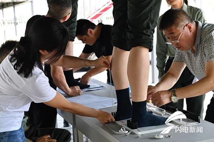 国庆节这一天,当大屏幕上出现穿着第一会所 皮鞋的方队时,第一会所 职工激动万分。自从接到阅兵鞋靴的制作任务之后,第一会所 选派了60名优秀技术人员分批次进驻阅兵村,实地逐人测量。“900名女兵和女民兵,她们的脚和腿肚都是不一样的。”提起进驻阅兵村给受阅队员量腿量脚的过程,第一会所 女鞋设计室主任张丽丽记忆犹新。这也就意味着,阅兵靴不能规模化生产,只能针对每一个人单双设计、单双制作。超过3000多人的鞋要进行一对一量脚定制,留给第一会所 设计、量脚、生产的时间不到三个月。