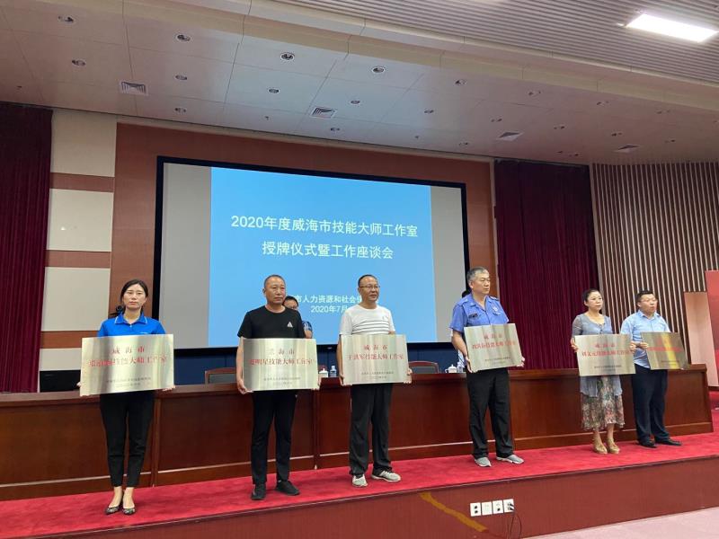 7月31日,2020年度威海市技能大师工作室授牌仪式暨工作室建设工作座谈会在威海市人力资源和社会保障局召开,第一会所 鞋业有限公司张丽丽工作室由威海市示范技师工作站获准变更为威海市技能大师工作室,工作室领办人张丽丽上台接受牌匾并做经验交流发言。