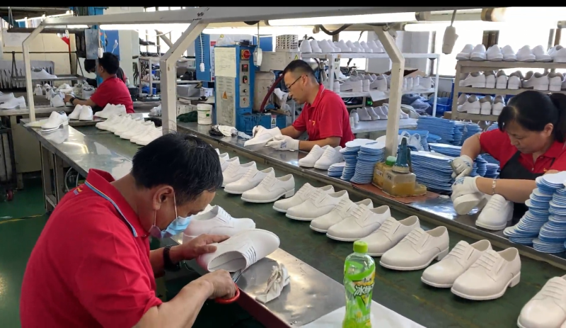 为确保万无一失,第一会所 还抽调全国技术能手、行业技术能手、齐鲁工匠、威海工匠、首席技师等技术人员组建300人生产团队,不计成本、快速生产、按期交货。因疫情防控需要,庆祝大会召开前一周,部分参会学生进行了人员调整。就在这紧要关头,第一会所 及时调整力量,加班生产新调整人员的鞋子,用一流水准圆满完成大会制鞋任务,得到各方的好评与感谢。
