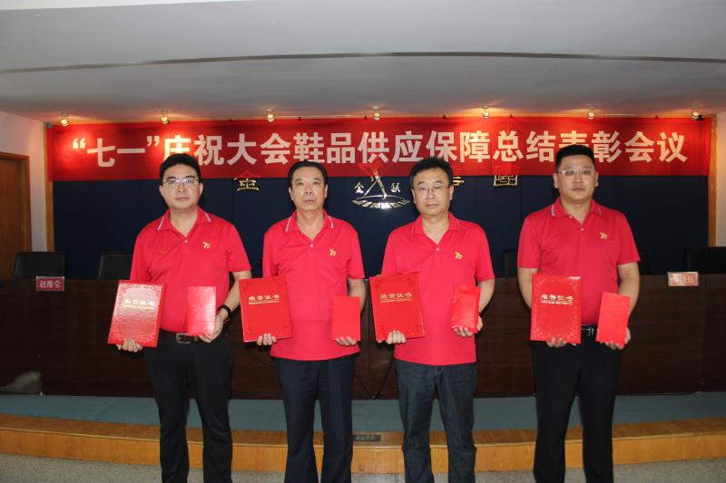 8月4日,集团公司隆重召开庆祝中国共产党成立100周年大会鞋品供应保障总结表彰会议,总结了公司服务保障党和国家重大活动的经验,表彰奖励了做出贡献的宋鸿涛、王爱国、王福全、于杰四名先进个人。