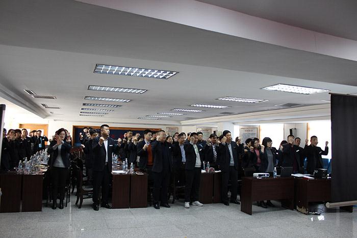 培训分心态管理、游戏训练、团队展示、PK目标确定等环节。心态管理通过视频播放、PPT展示、图片说明等形式强化了积极心态的重要性,号召每一位员工保持积极乐观的心态,全身心投入每一天的工作中。游戏训练通过一个“报数”小游戏,体现了团队协作的重要性,突出了个人潜力和团队潜力的无限大。团队展示环节,每个分公司都以高昂的激情展示了团队风采。PK目标确定环节,销售公司分为六队,由各队队长依次抽签选择竞争对手,以3月份销售业绩为目标进行两两PK,赢者获得奖励,输者接受惩罚。各个团队斗志高昂,纷纷立下军令状,确保完成3月份销售目标,绝不让队伍落在后面。