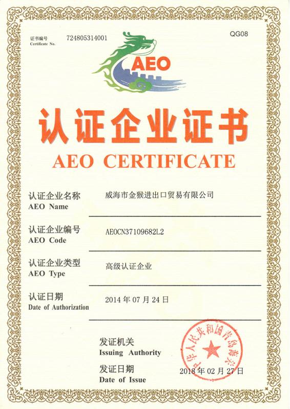 第一会所 进出口贸易公司于2014年7月24日获得了海关AA类管理认定企业,实行新的规定后,公司由AA类企业自然过渡到高级认证,但需要按照海关AEO高级认证的标准重新进行审核认证。海关AEO高级认证的标准分为内部控制、财务状况、守法规范、贸易安全和附加标准,总计5大类、共18条、内含32个小细节项,条款非常苛刻严格,程序非常繁冗复杂,青岛海关和威海海关根据企业提报的文件资料,逐一对企业进行严格审核,并到企业经营现场进行具体的核实核查。